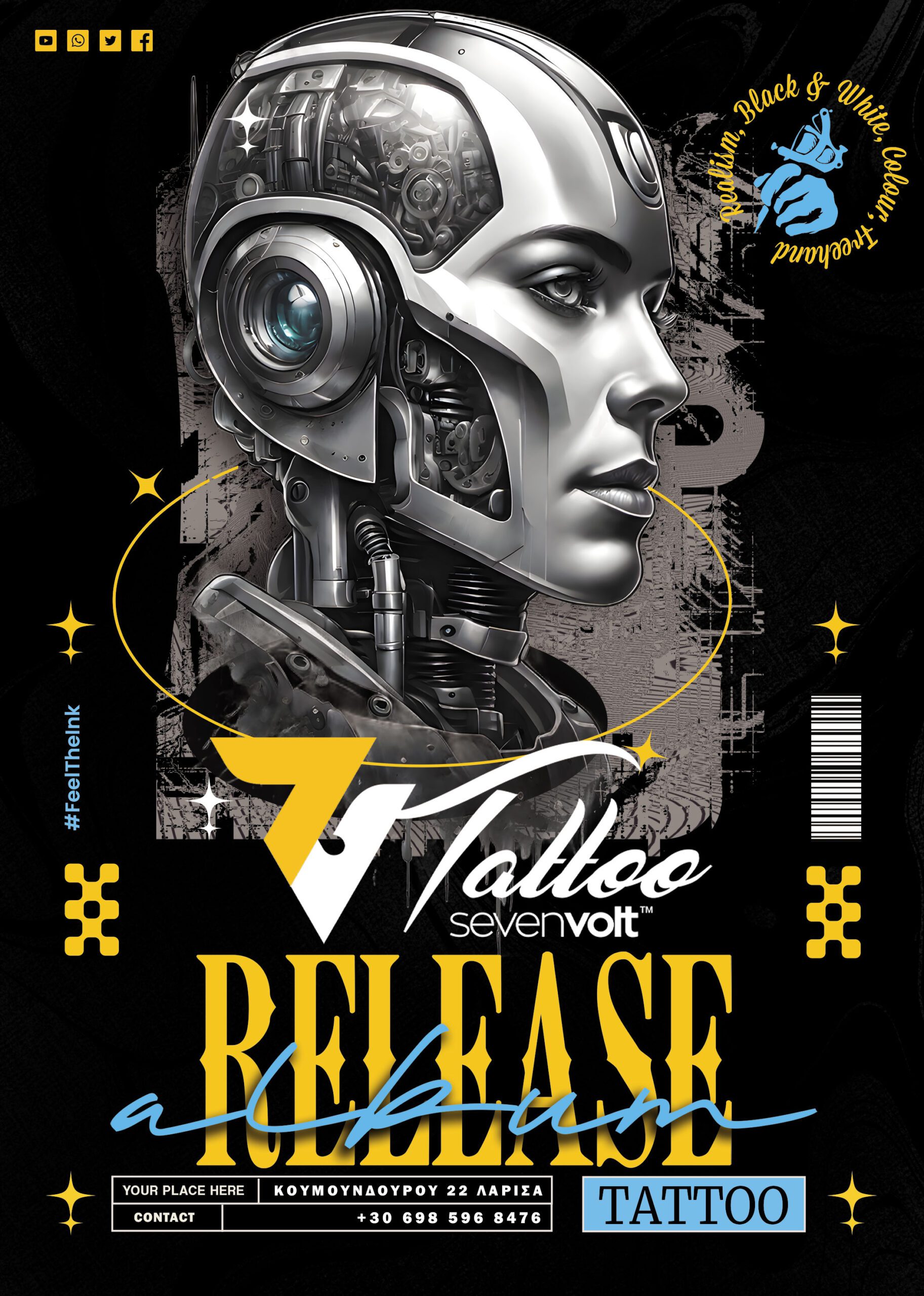 7VOLT Tattoo Studio Λάρισα : Εσύ φέρνεις την ιδέα — εμείς τη μετατρέπουμε σε έργο τέχνης.