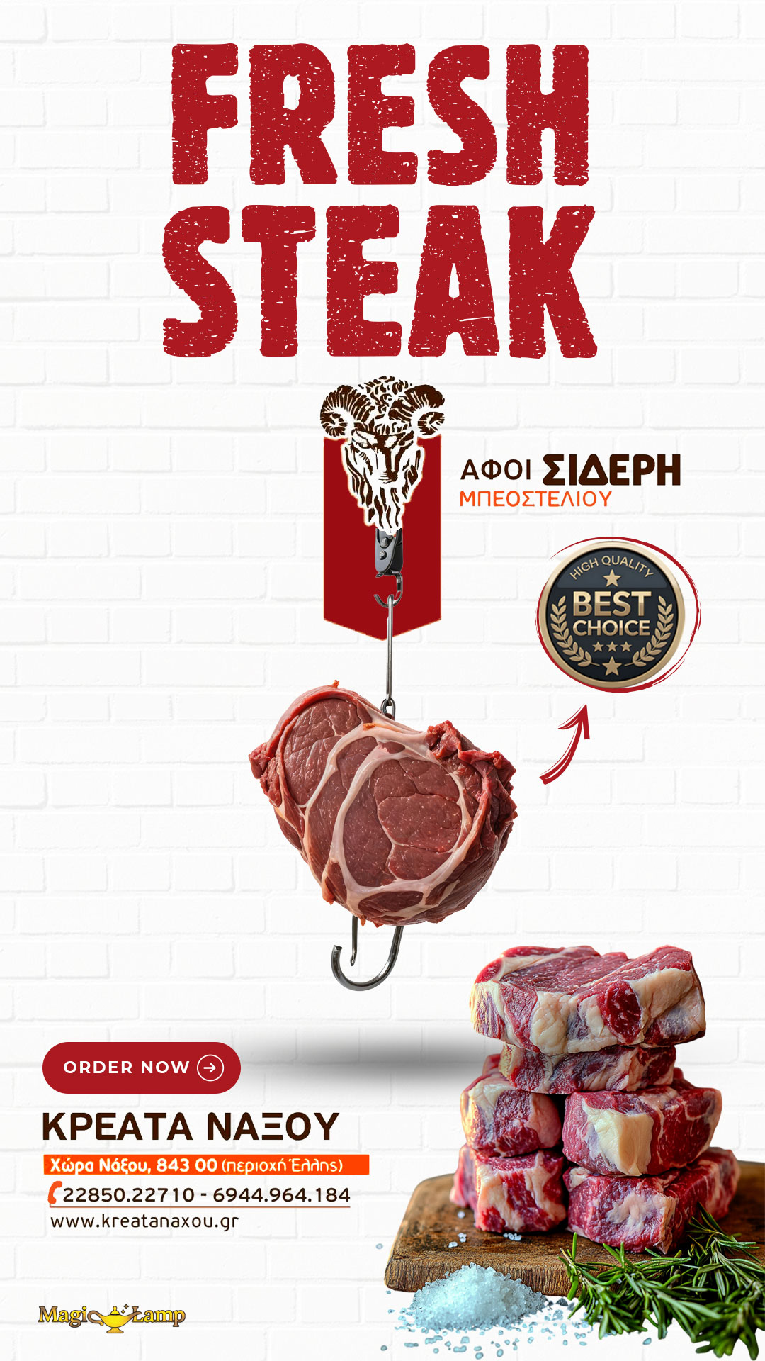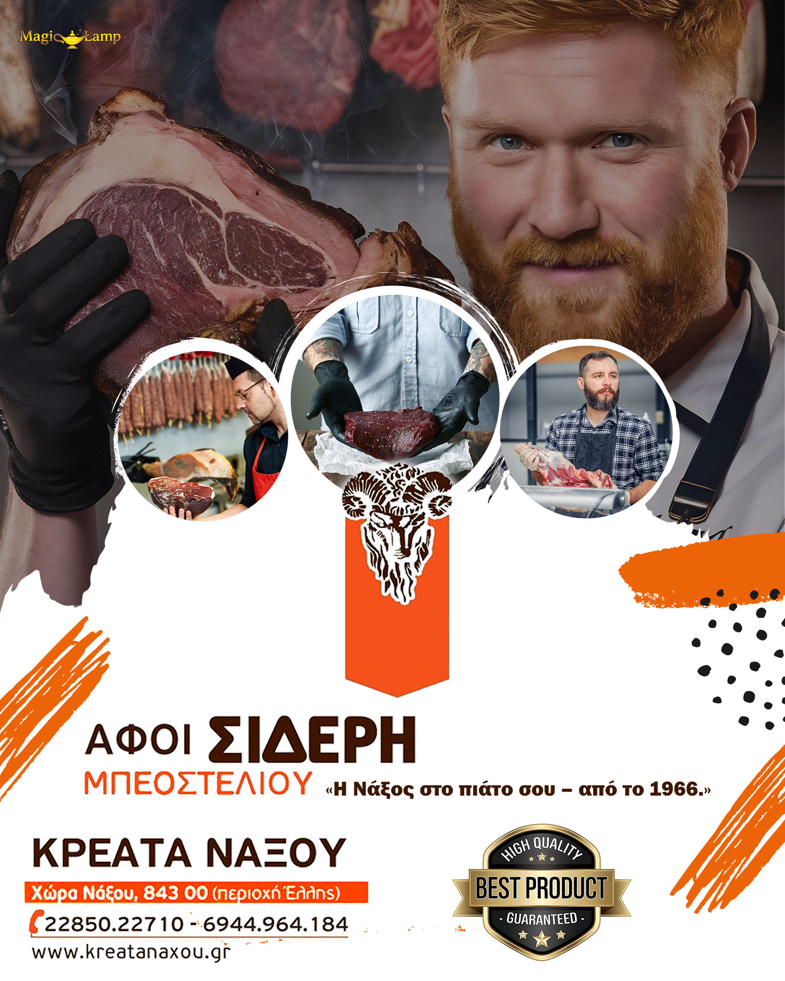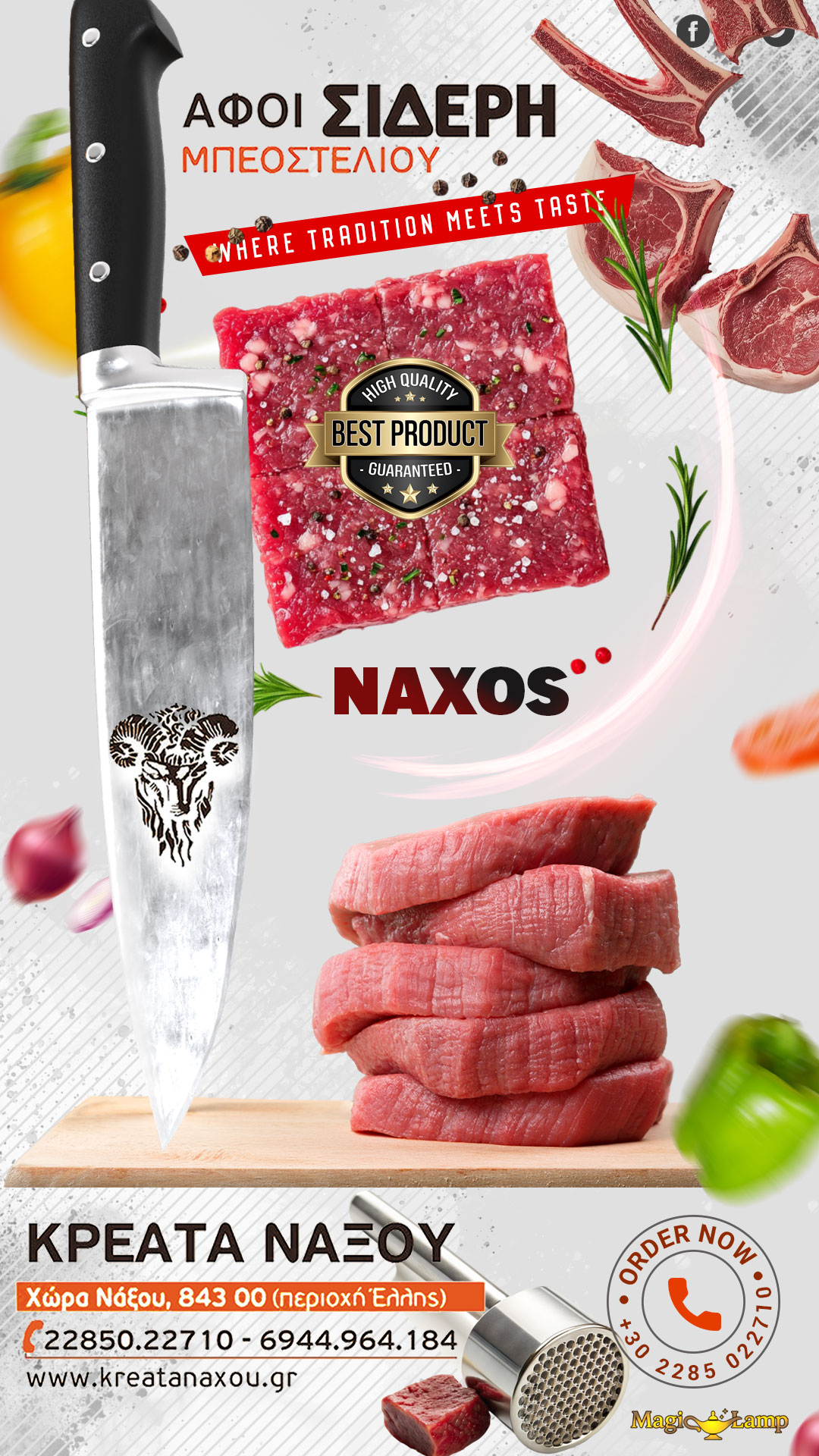 ΚΡΕΑΤΑ ΝΑΞΟΥ ΣΙΔΕΡΗ – Κρεοπωλείο Νάξος: «Η Νάξος στο πιάτο σου – από το 1966.»