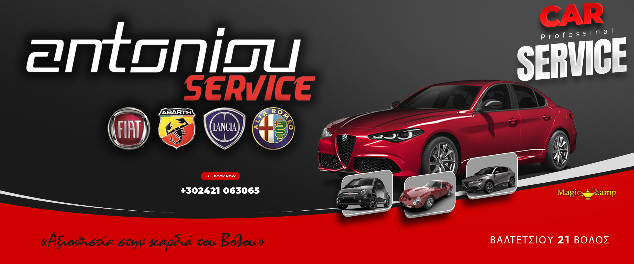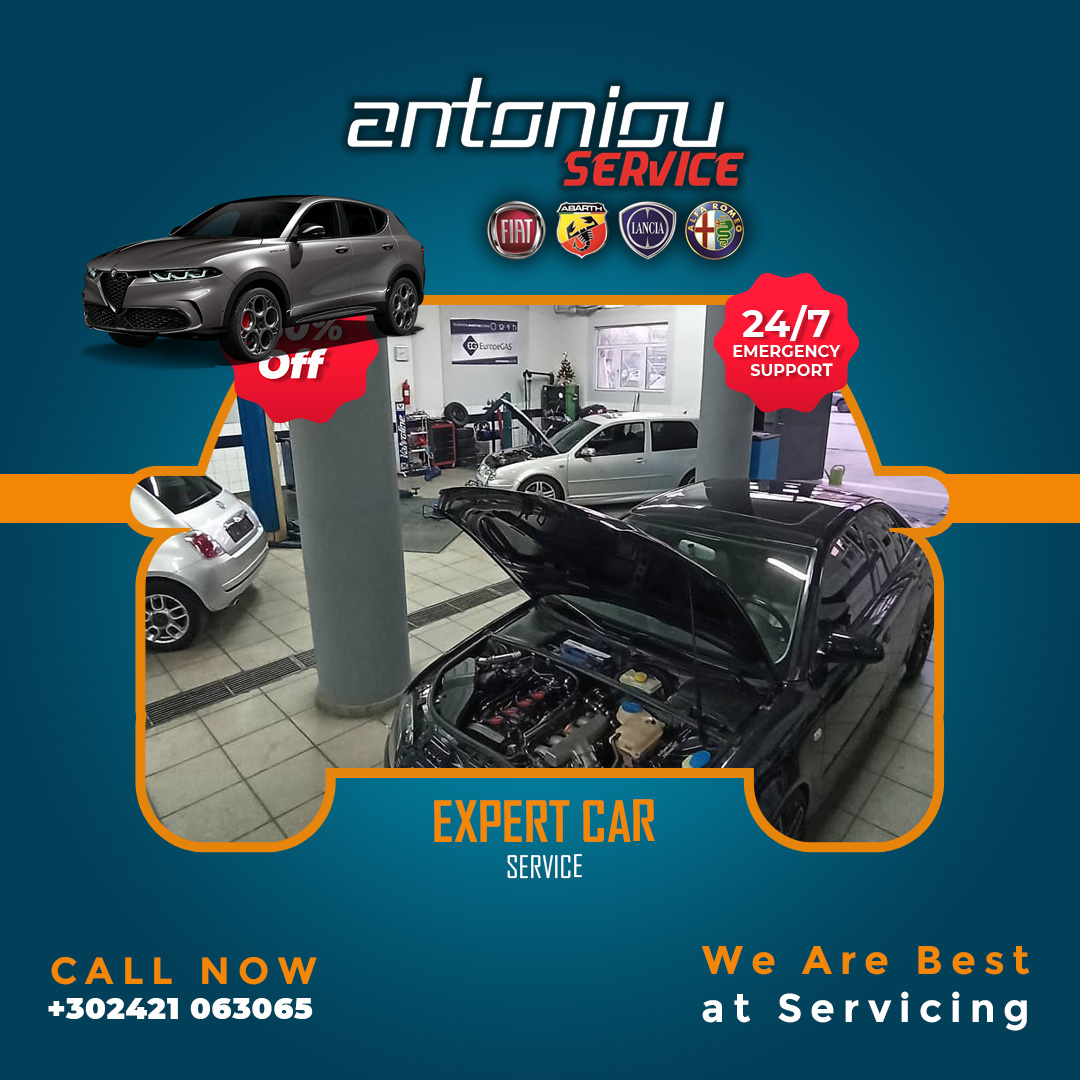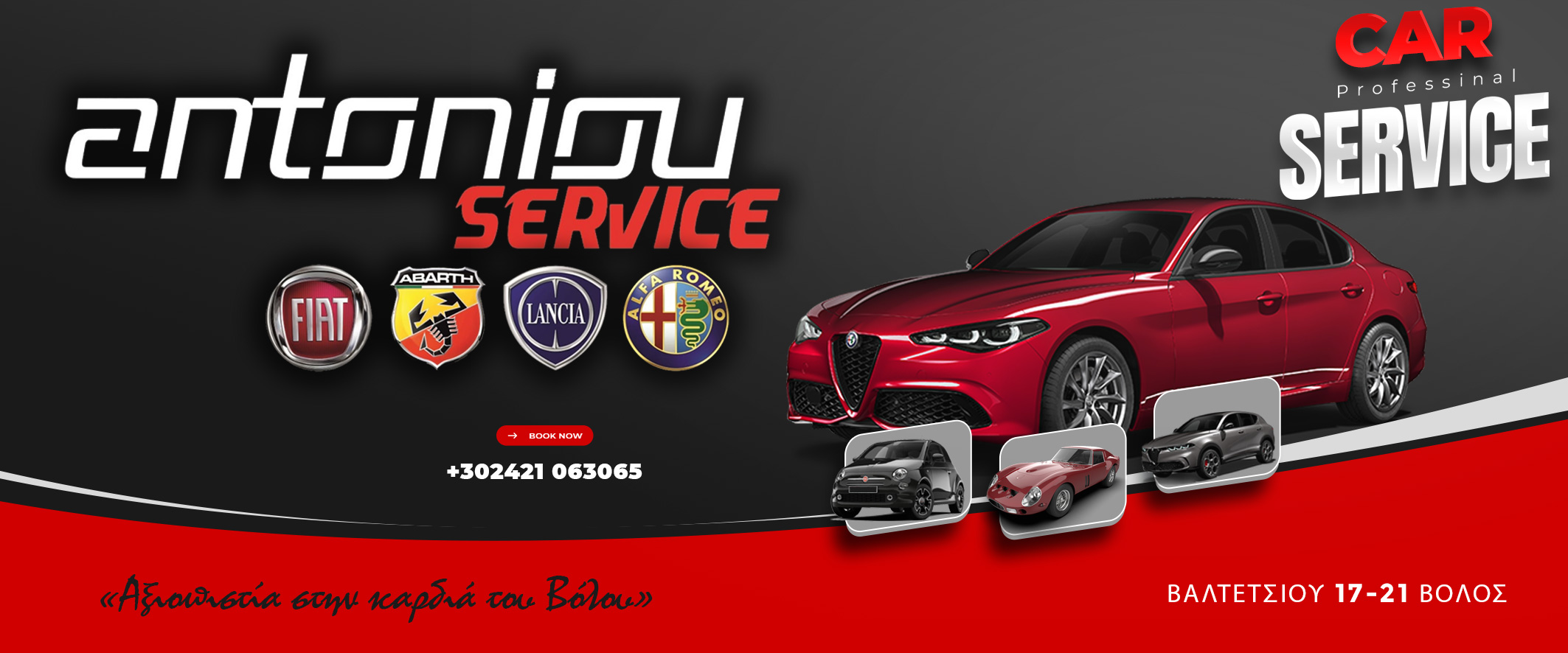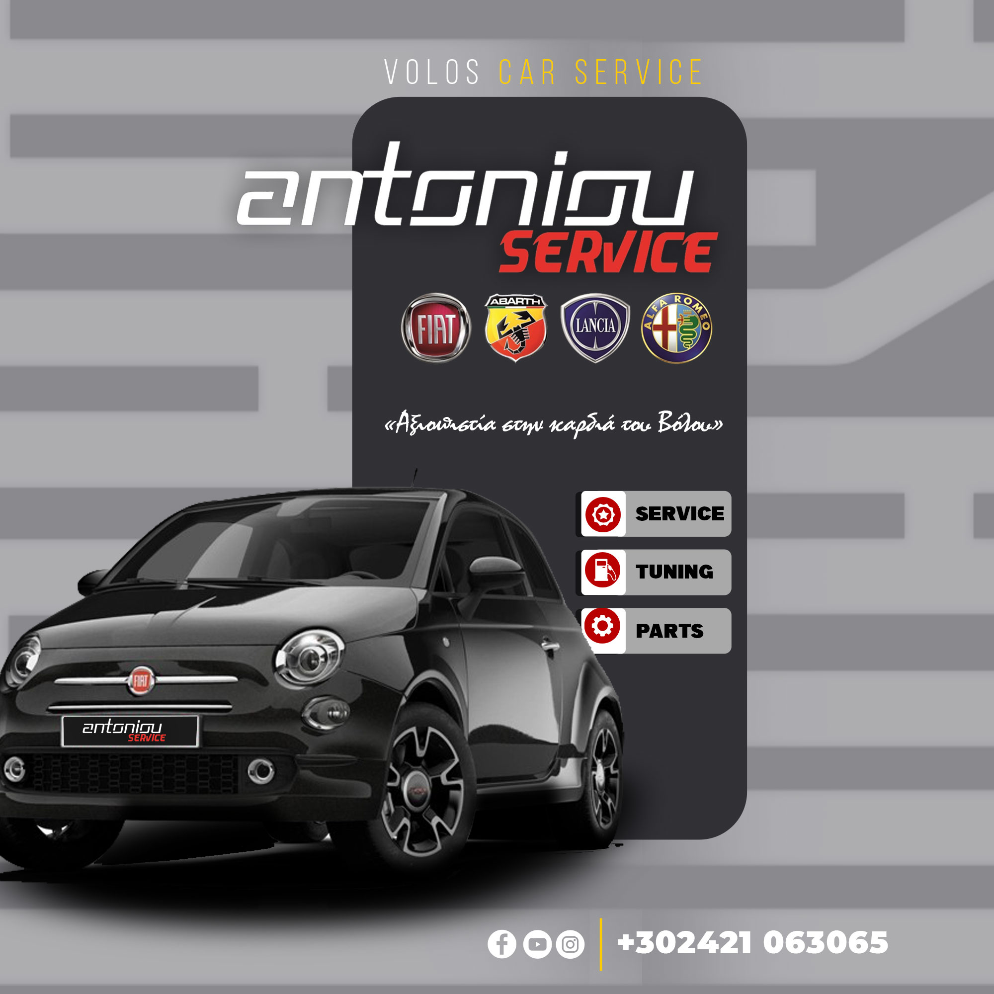 Συνεργείο Αυτοκινήτων Αντωνίου Βόλος – Service Ανταλλακτικά Βελτιώση : Καλώς ήρθατε στο Συνεργείο Αντωνίου στο συνεργείο όπου το αυτοκίνητό σας αντιμετωπίζεται με επαγγελματισμό και μεράκι. Εξειδίκευση στα μοντέλα Fiat, Alfa Romeo, Lancia. Υγραεριοκίνηση με εγγύηση 2 ετών.Με ένα ραντεβού θα σας δώσουμε διάγνωση χωρίς υποχρεώσεις.