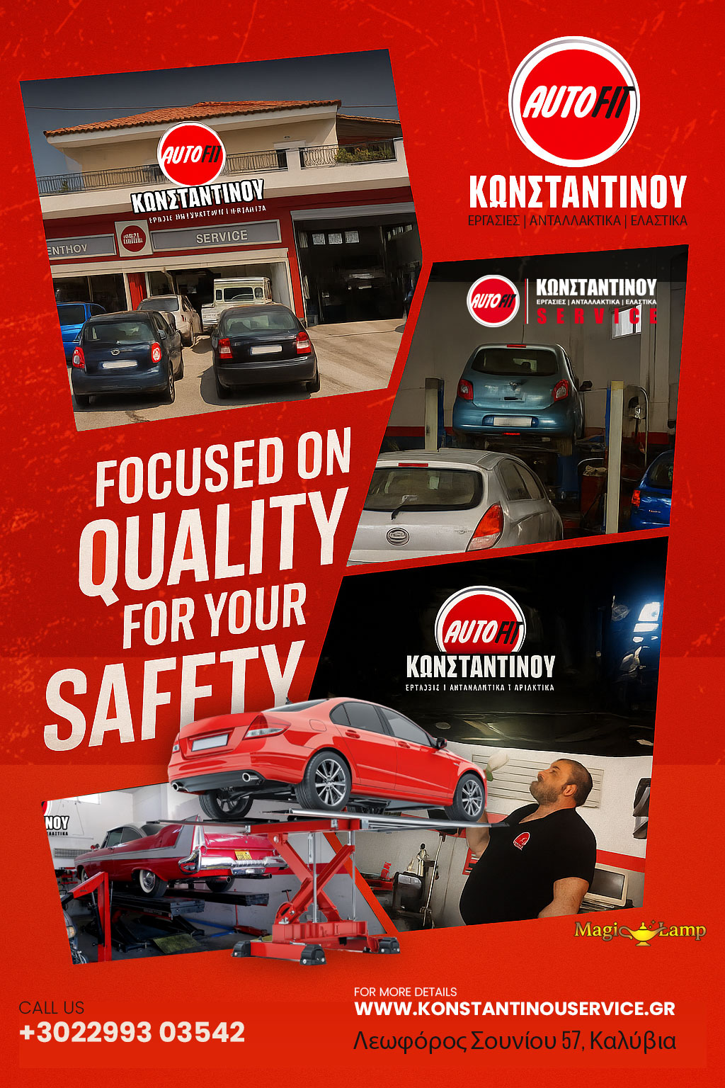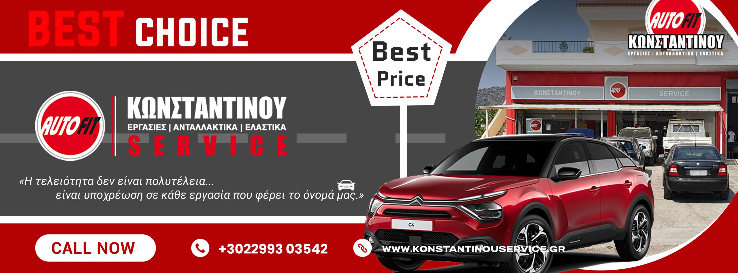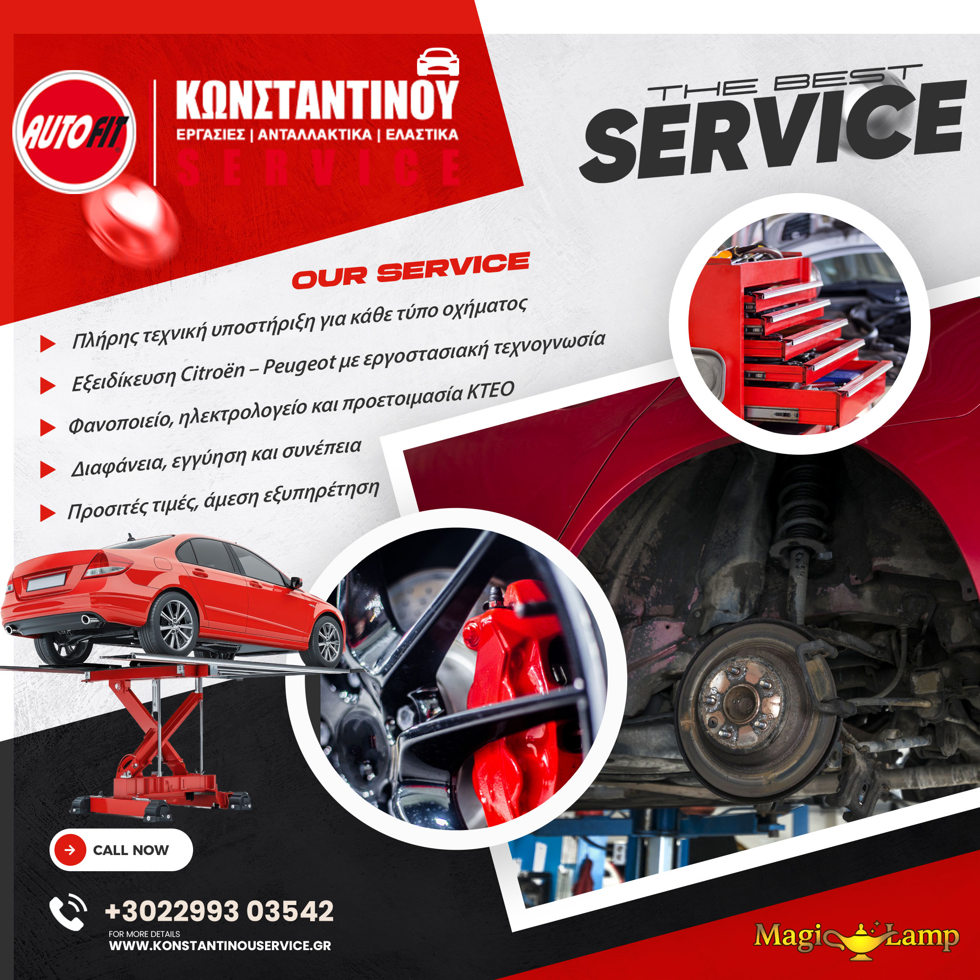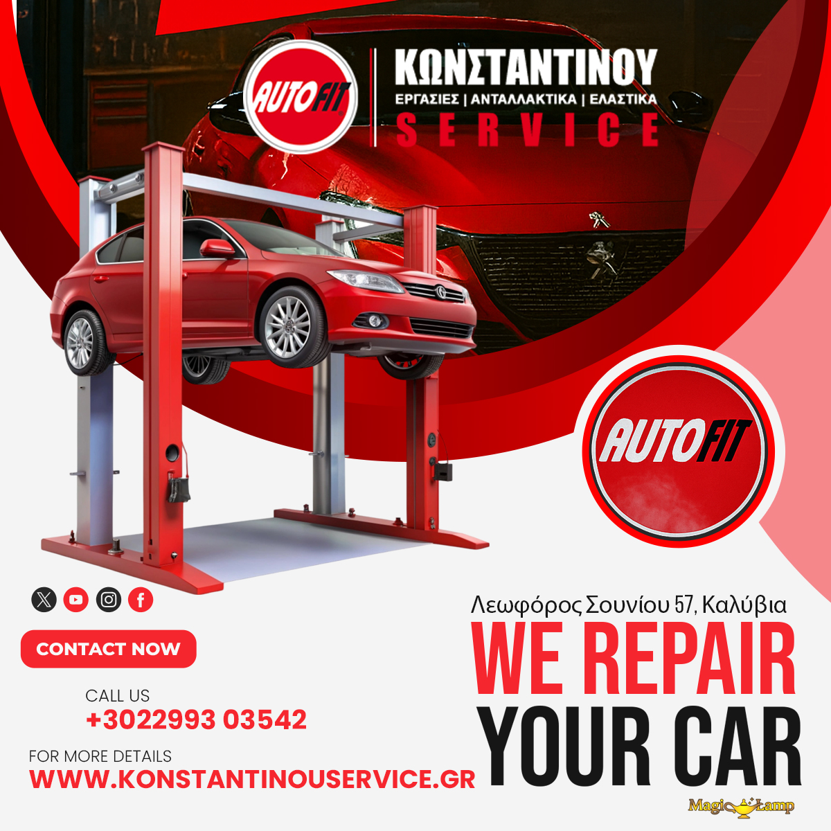 Κάθε αυτοκίνητο έχει ψυχή. Στην Κωνσταντίνου Service AUTO FIT την κρατάμε δυνατή: εργοστασιακά διαγνωστικά, service με εγγύηση, άμεση εξυπηρέτηση. Κλείσε ραντεβού και ξεκίνα ήρεμα!