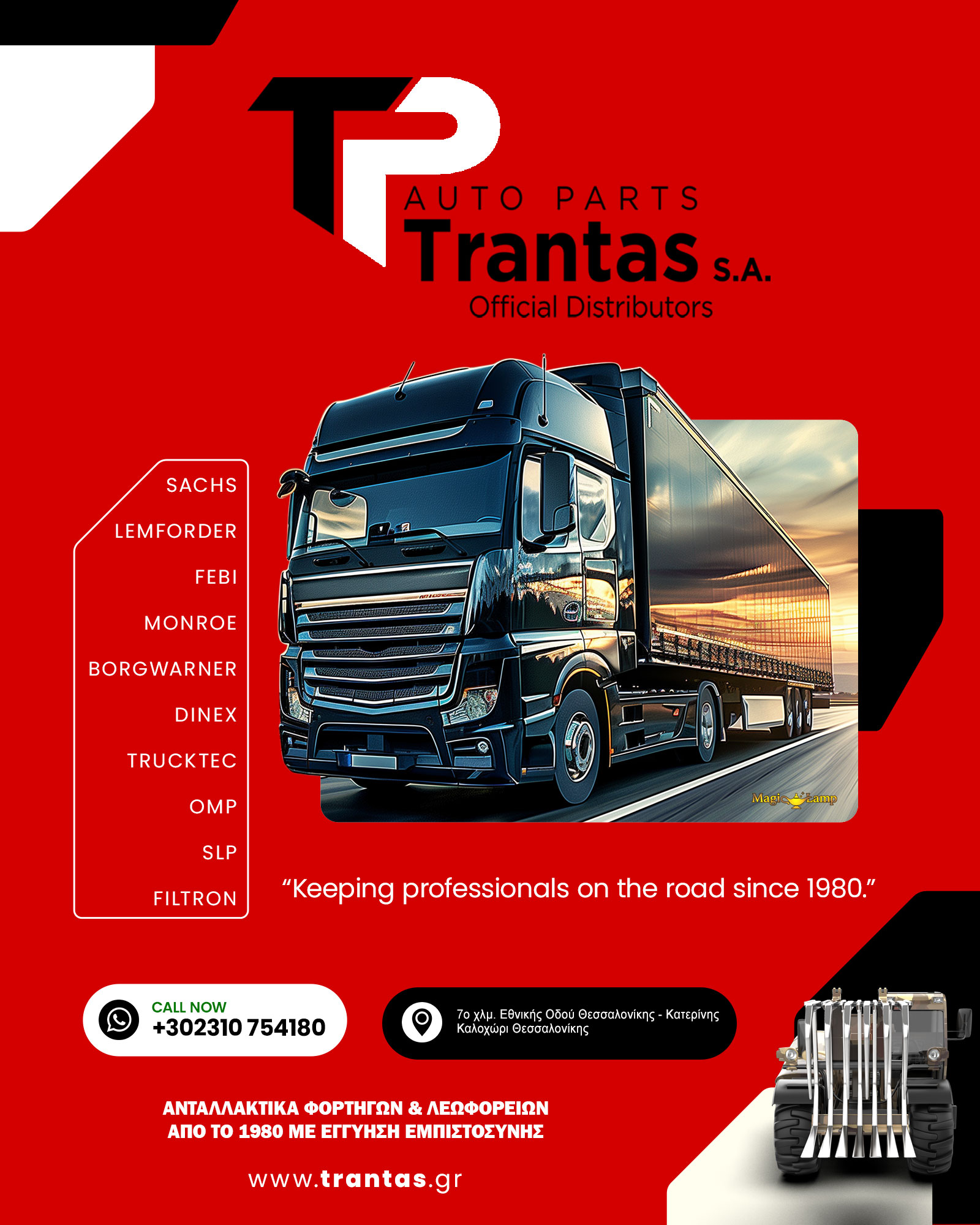 Η ΤΡΑΝΤΑΣ ΑΕ ξεχωρίζει γιατί συνδυάζει την εμπειρία δεκαετιών με τη συνέπεια μιας σύγχρονης, οργανωμένης επιχείρησης. Με τεχνικά καταρτισμένο προσωπικό, άμεση διαθεσιμότητα και αποστολές σε όλη την Ελλάδα και το εξωτερικό, αποτελεί τον συνεργάτη που εμπιστεύονται όσοι θέλουν τα οχήματά τους να παραμένουν στο δρόμο, αξιόπιστα και παραγωγικά.